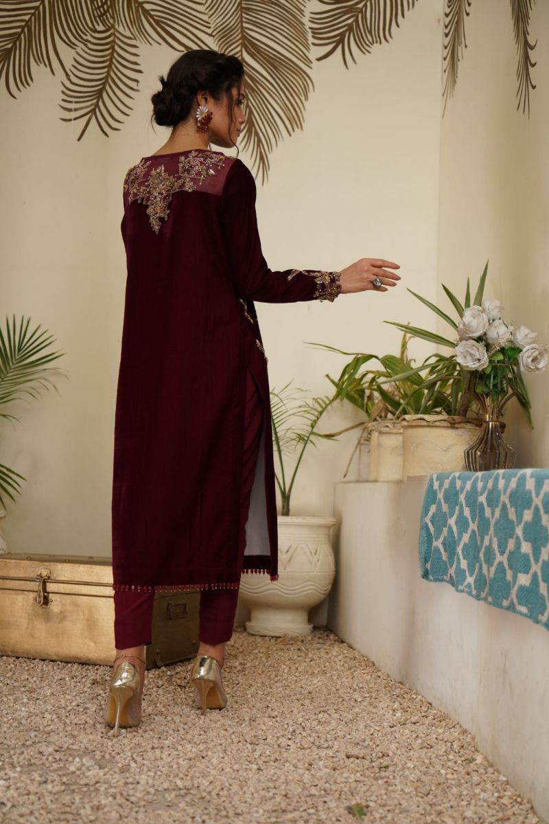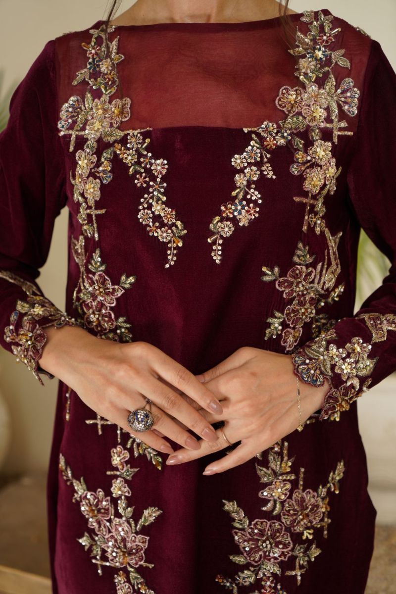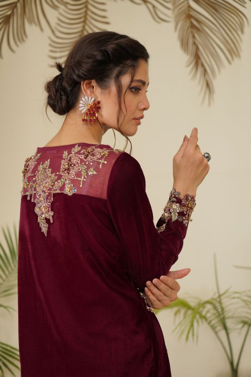 • Velvet shirt & trousers with sharing organza