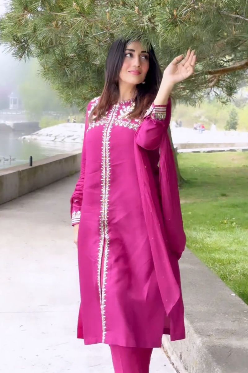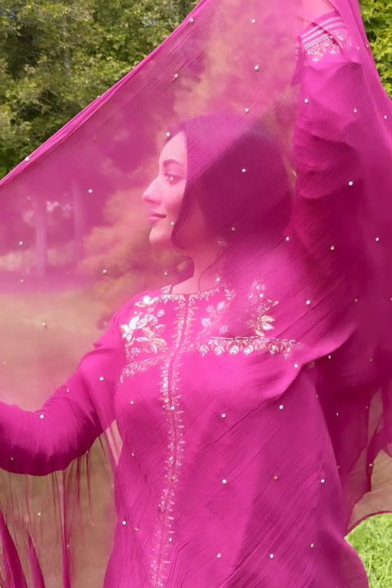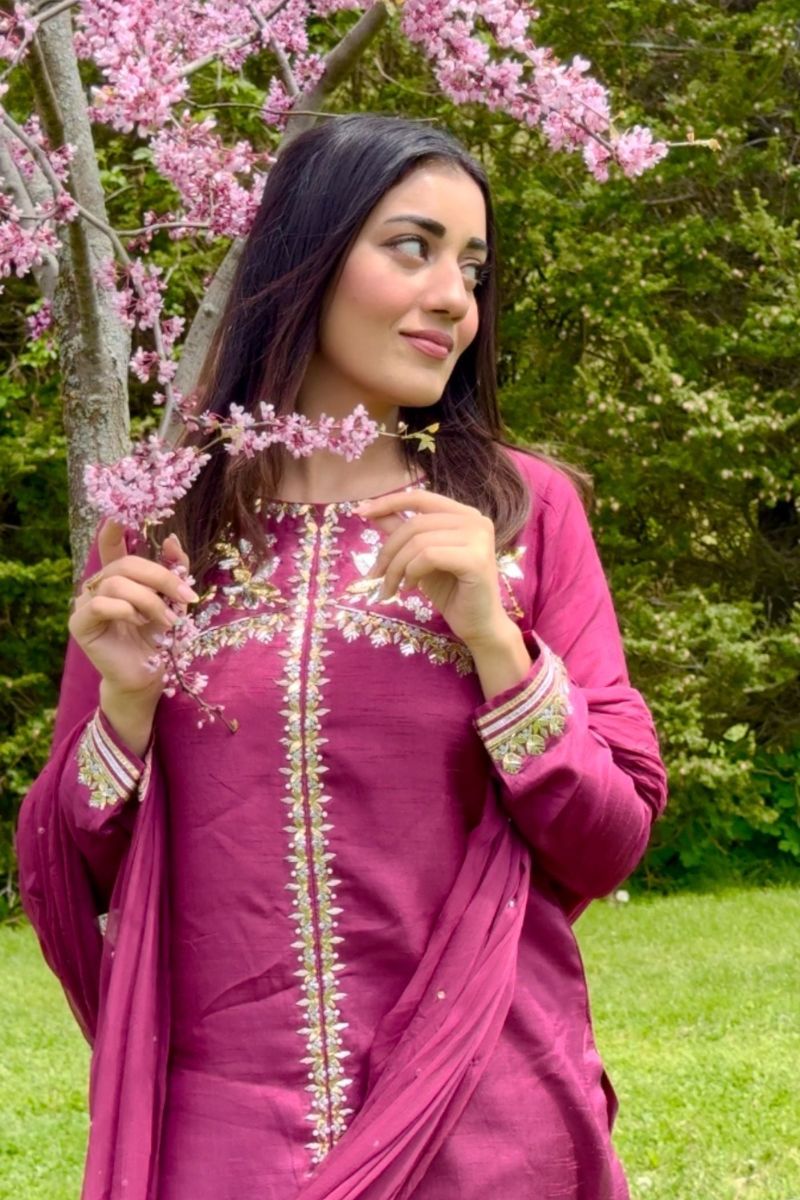 Fabric: Shirt: Korean rawsilk Trousers: Rawsilk Dupatta: Chiffon