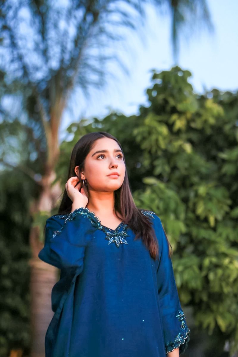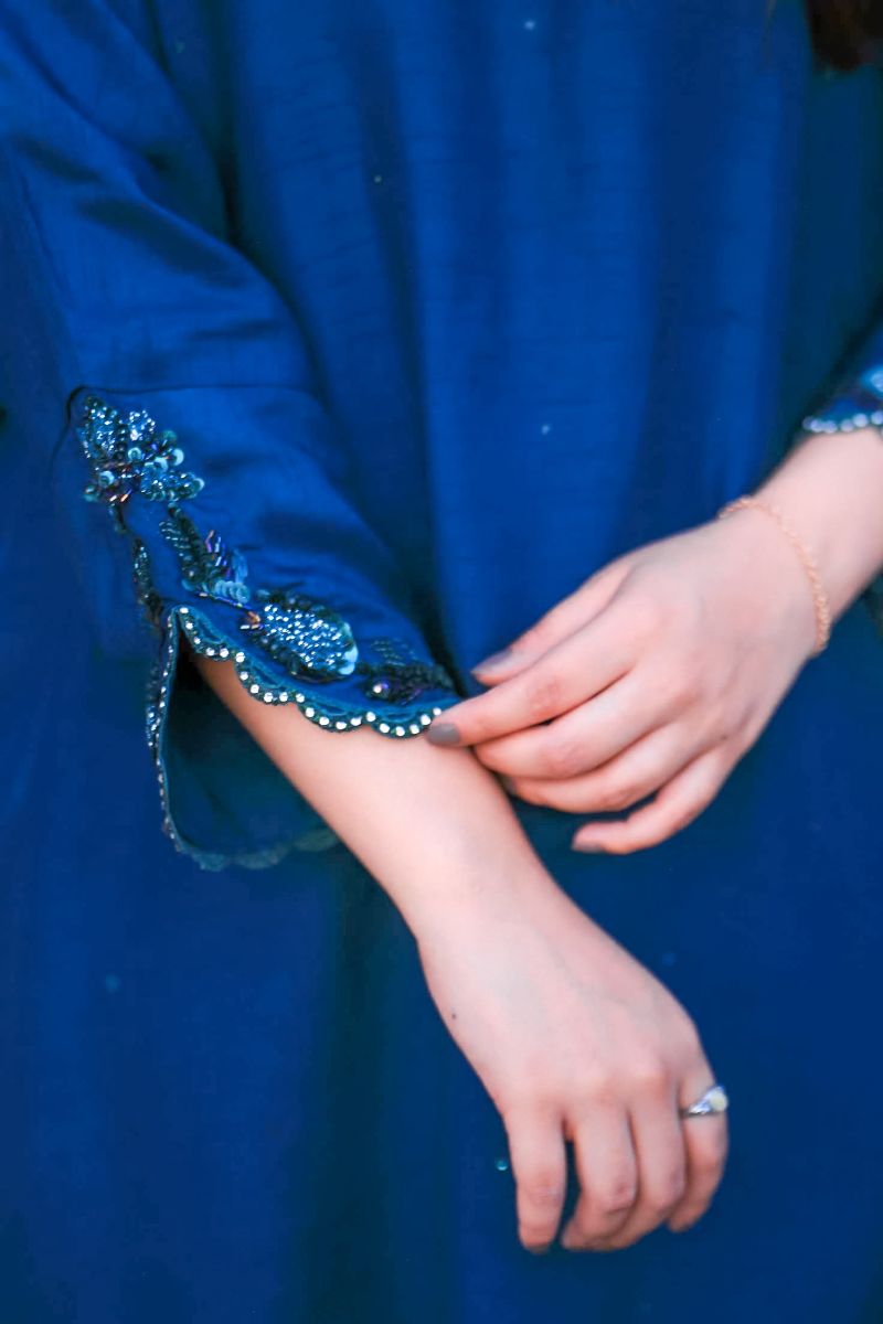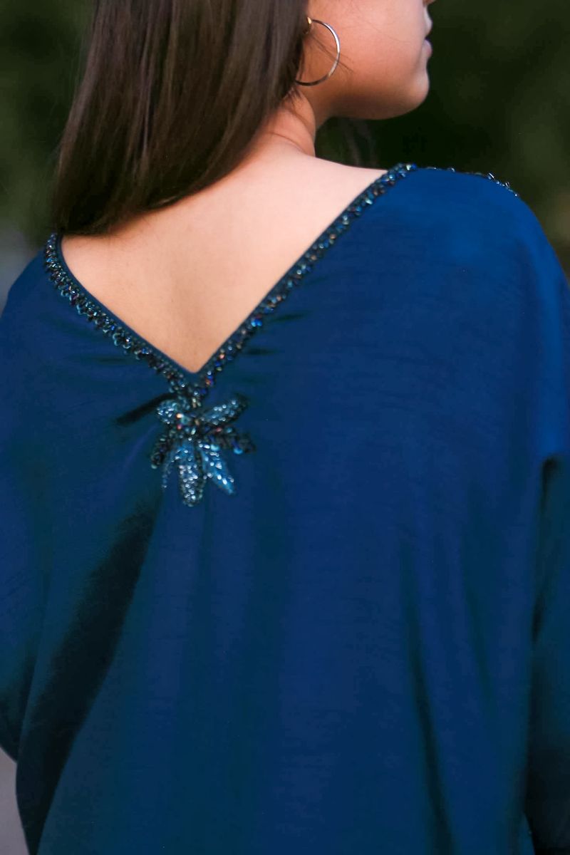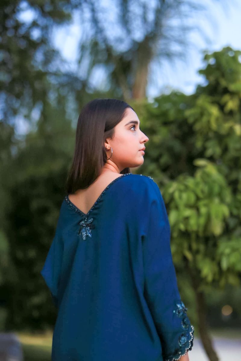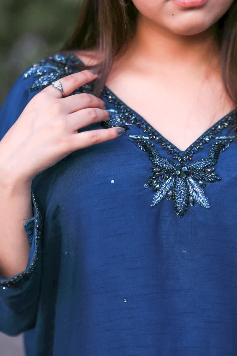 Step into a world of elegance with our latest design "Azure Dream" stunning kaftan, featuring intricate detailing on the neck and sleeves that adds a touch of sophistication and charm. Paired with matching trousers. Perfect for any occasion, this kaftan combines comfort and style effortlessly.