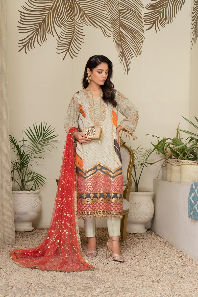 • Dupatta : Net mukesh (coral)